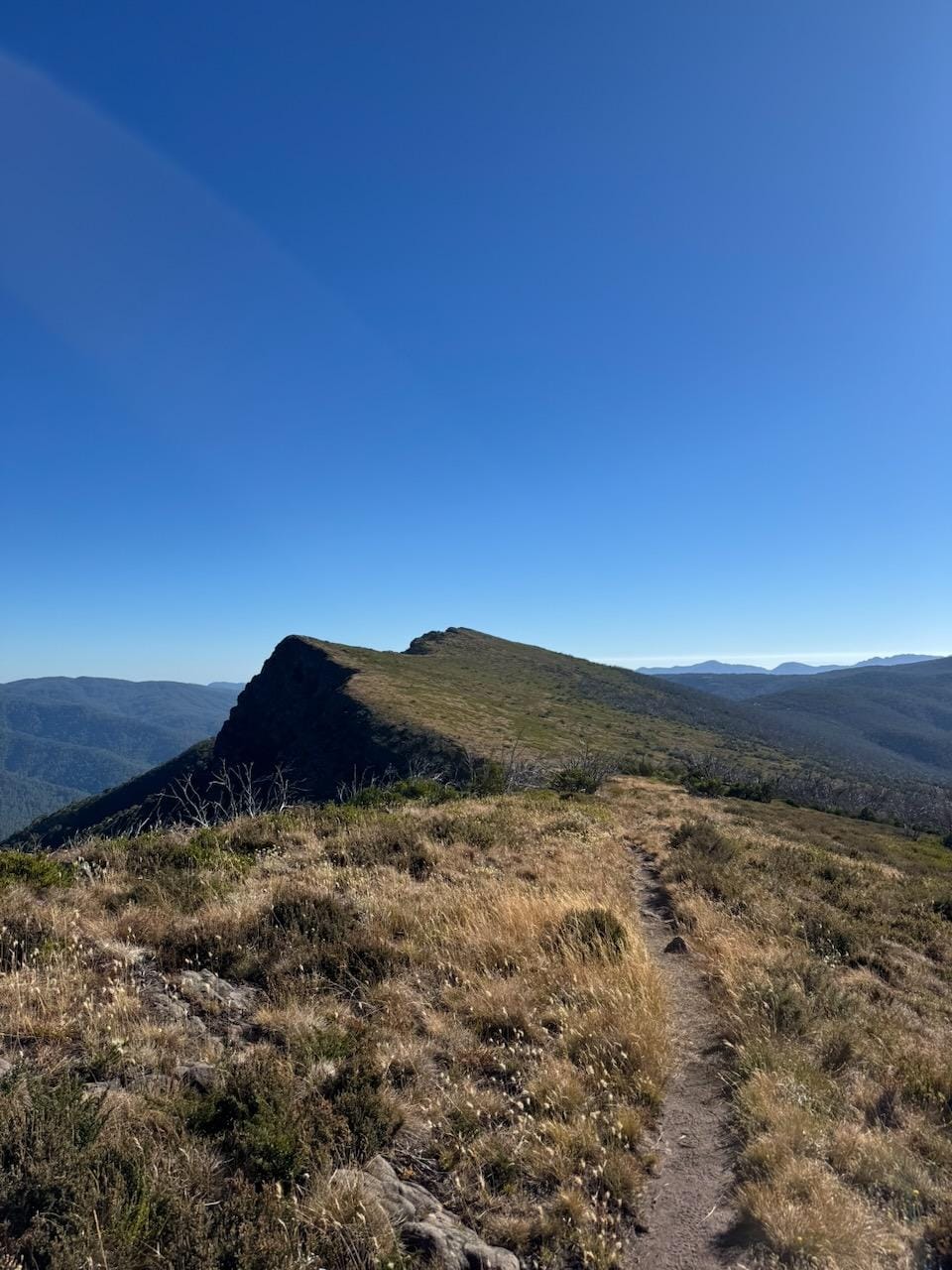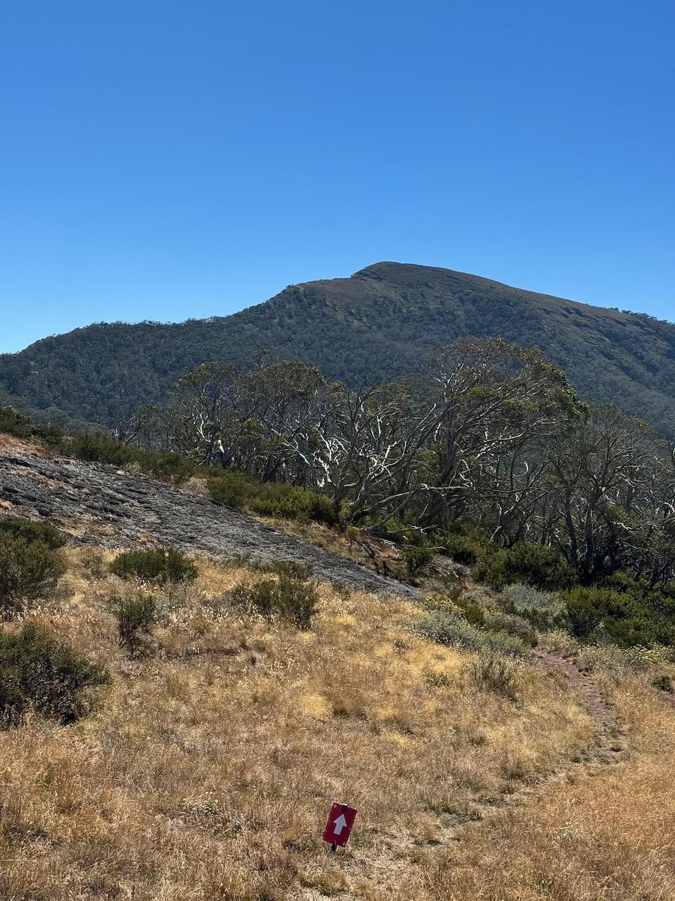 I topped off my water at the turnoff, knowing that this is a long exposed section and unsure about the water situation at Gantner Hut, as per the race briefing, and dived into the more technical singletrack of the Australian Alps Walking Trail (AAWT). Soon after I was greeted with quite the climb up Mt Magadala, followed by a descent before much more climbing and descending again, ultimately climbing up Mt Howitt, and taking the turnoff to the out and back to Gantner hut.